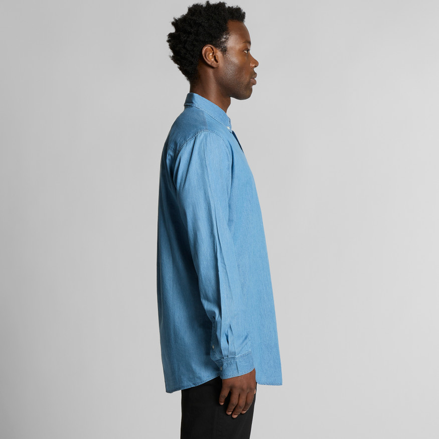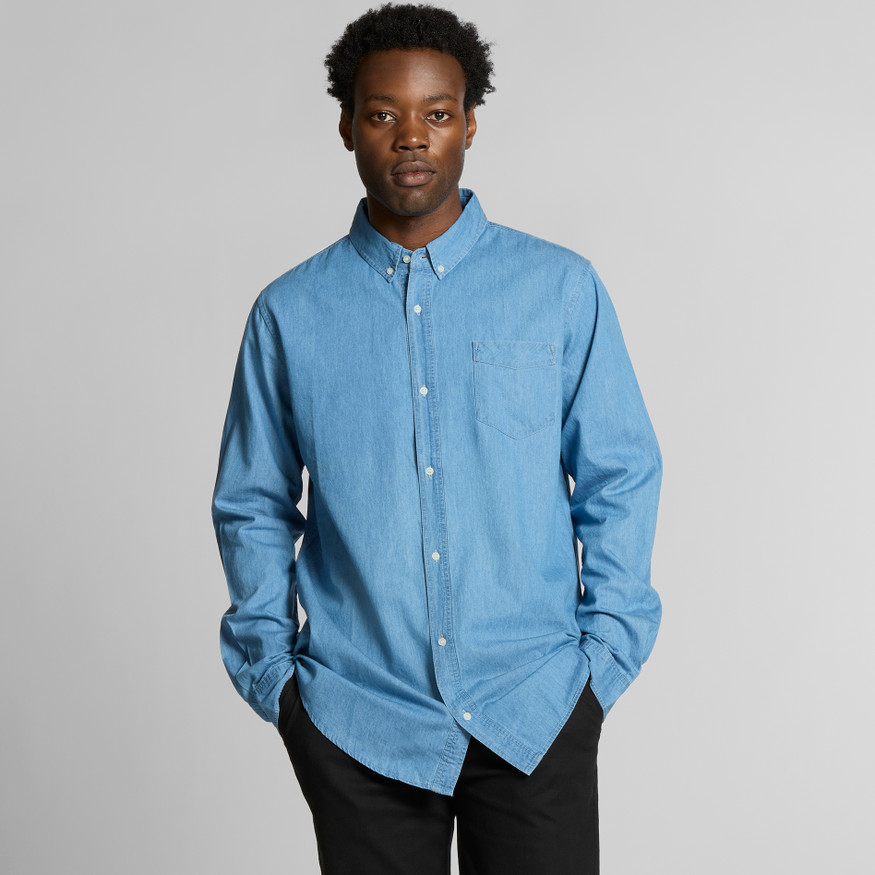 Denim weave, button-down collar, chest pocket, pearl buttons, side seamed, preshrunk to minimise shrinkage