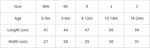 | Body Length (cm) | 70 | 72 | 74 | 76 | 78 | 79 | 80 | 81 | 82 |